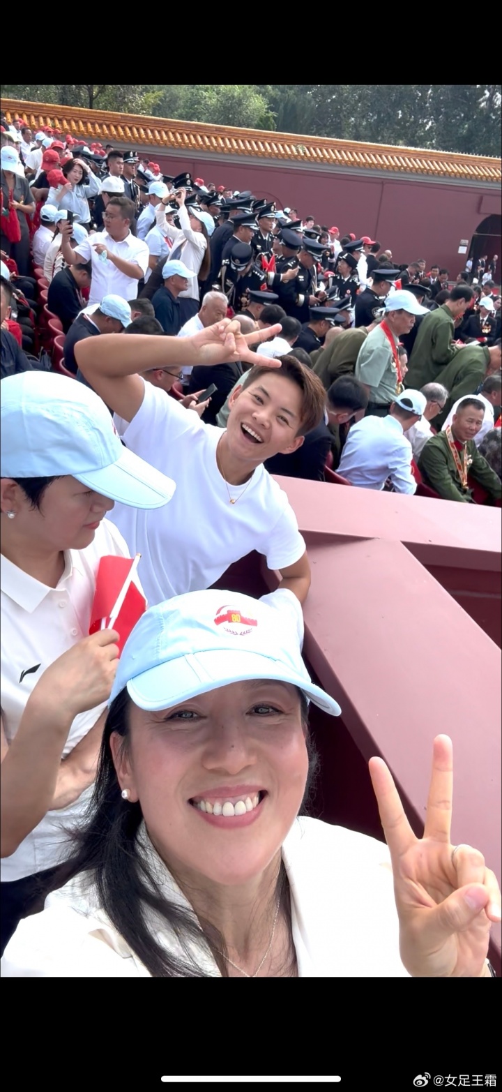 很荣幸受邀作为足球界的代表和优秀的奥运冠军世界冠军一同见证祖国的强大,深受鼓舞和自豪。