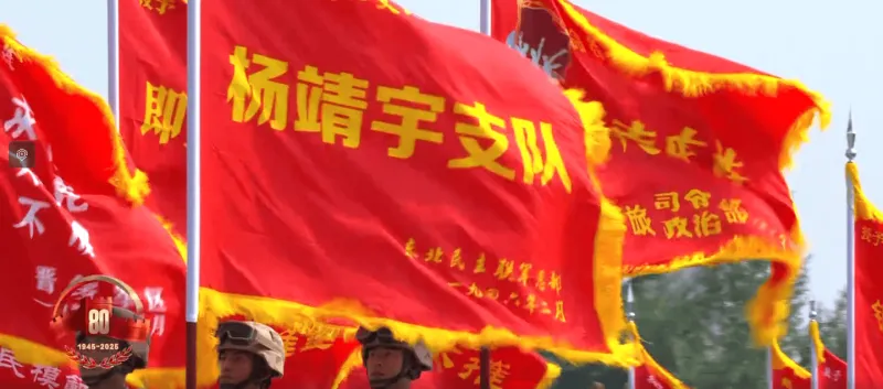 细心的朋友应该能发现,阅兵式直播,战旗方队的镜头足足给了杨靖宇支队20秒时间的特写。