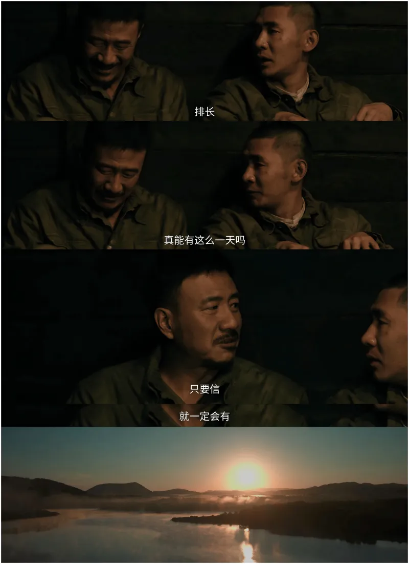 剧中,1941年,胡军主演的抗联老兵在苏联境内休整,他跟年轻战士展望未来的胜局: