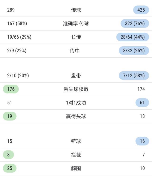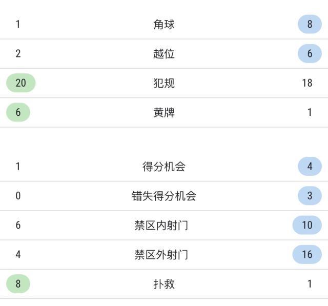上半场双方技术统计